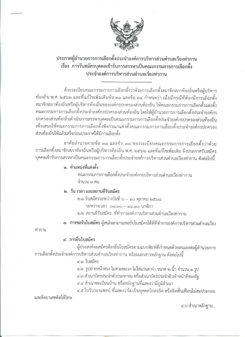 ประชาสัมพันธ์ คำสั่ง/ประกาศ ประกาศผู้อำนวยการการเลือกตั้งประจำองค์การบริหารส่วนตำบลเวียงท่ากาน เรื่อง การรับสมัครบุคคลเข้ารับการสรรหาเป็นคณะกรรมการการเลือกตั้งประจำองค์การบริหารส่วนตำบลเวียงท่ากาน